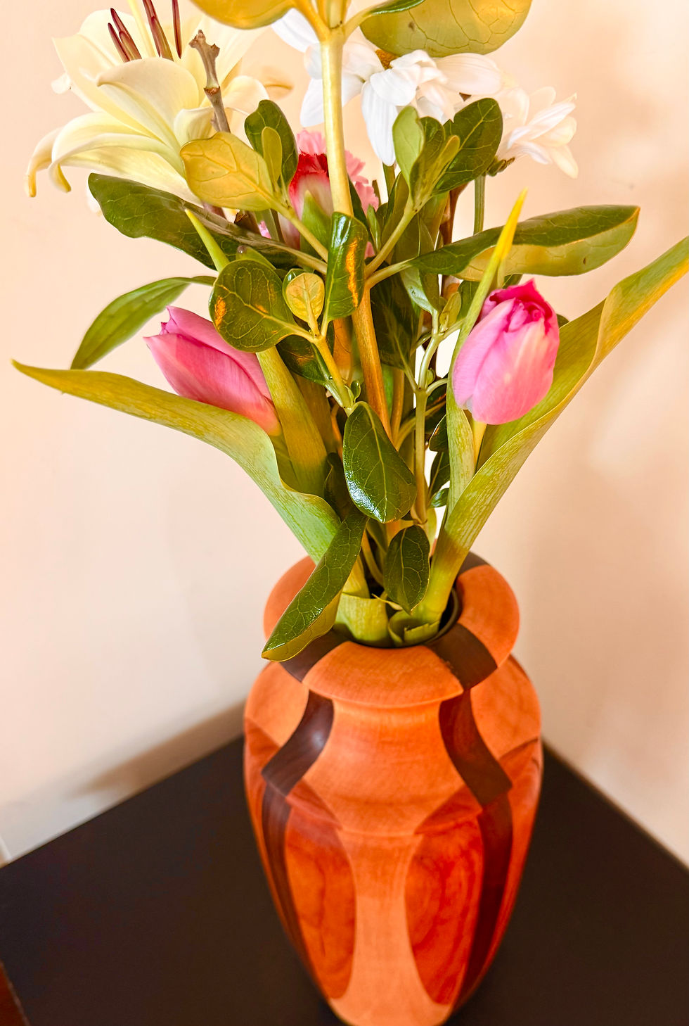 Sculptural Segmented Wood Flower Vessel – Maple & Walnut | Hand Turned Vase with